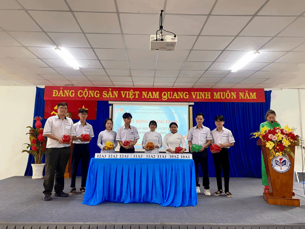 Tiếp theo chương trinh, cô Phạm Thị Bích Tuyền-Bí thư Chi đoàn đã phát động và triển khai phong trào “Cùng bạn học giỏi vượt khó” bằng hình thức mỗi lớp sẽ được trang bị một con heo đất. Mỗi đoàn viên, học viên tham gia phong trào bằng cách tiết kiệm tiền ăn quà vặt, tiết kiệm tiền ăn sáng, tiền tiết kiệm để nuôi heo đất. Tiền thu hoạch được từ heo đất sẽ gây quỹ học bổng và quà tặng cho những học viên, đoàn viên có hoàn cảnh khó khăn, học khá, giỏi và giàu nghị lực vươn lên trong cuộc sống của Trung tâm.