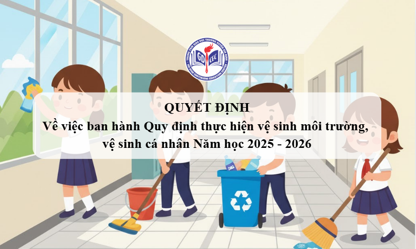 Quyết định Về việc ban hành Quy định thực hiện vệ sinh môi trường, vệ sinh cá nhân Năm học 2025 – 2026 10 Tháng 10, 202518 Views 334. Về Quyết định vệ sinh môi trường cá nhân (1) (1)Tải xuống