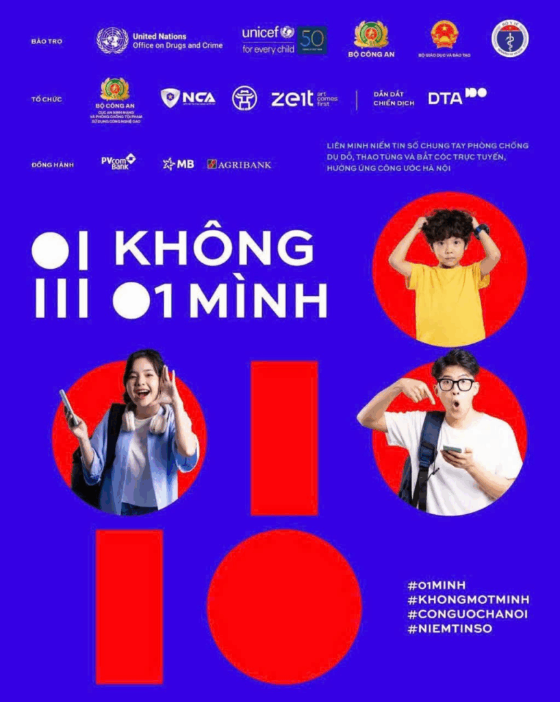 Hưởng ứng sự kiện Công ước Hà Nội – văn kiện quốc tế quan trọng về chống tội phạm mạng mang tên Thủ đô của Việt Nam, dưới sự bảo trợ của Cơ quan Phòng chống Ma túy và Tội phạm của Liên Hợp Quốc (UNODC), Quỹ Nhi đồng Liên Hợp Quốc (UNICEF), Bộ Công an, Bộ Giáo dục và Đào tạo và Bộ Y tế, Liên minh Niềm tin số chính thức triển khai Chiến dịch “Không Một Mình”.