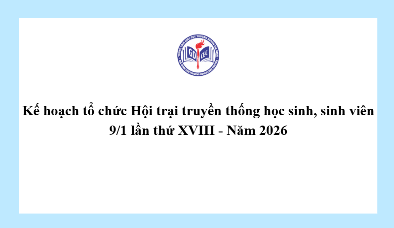 Kế hoạch tổ chức Hội trại truyền thống học sinh, sinh viên 9/1 lần thứ XVIII – Năm 2026 31 Tháng 10, 20255 Views 3897_1 – Kế hoạch Trại 9-1 năm 2026Tải xuống