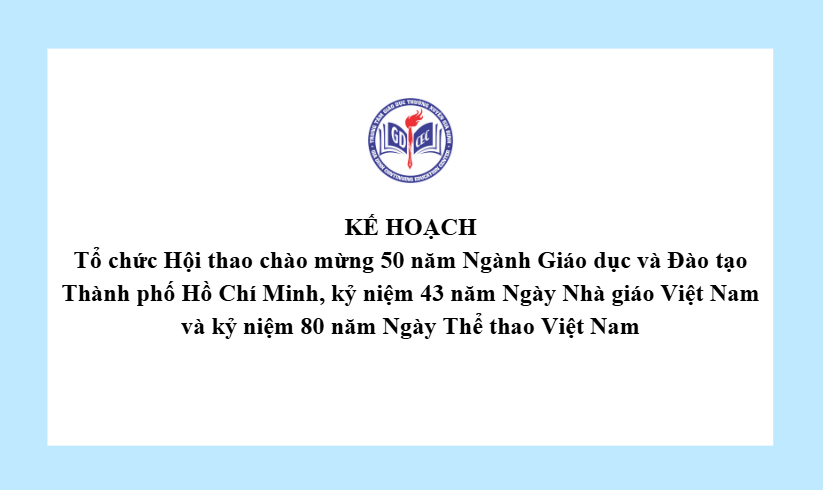 • Kế hoạch Tổ chức Hội thao chào mừng 50 năm Ngành Giáo dục và Đào tạo Thành phố Hồ Chí Minh, kỷ niệm 43 năm Ngày Nhà giáo Việt Nam và kỷ niệm 80 năm Ngày Thể thao Việt Nam