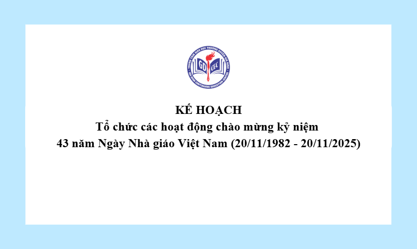 Kế hoạch Tổ chức các hoạt động chào mừng kỷ niệm 43 năm Ngày Nhà giáo Việt Nam (20/11/1982 – 20/11/2025) 13 Tháng mười một, 20250 Views 407_GD-Ke hoach to chuc hoat dong nhan ngay 20.11.2025 (11.11)Tải xuống Danh sách GV-VC-NLĐ tham gia hội thao kỷ niệm 43 năm ngày nhà giáo VN (Đính kèm kế hoạch 407 KH-TXGĐ)Tải xuống