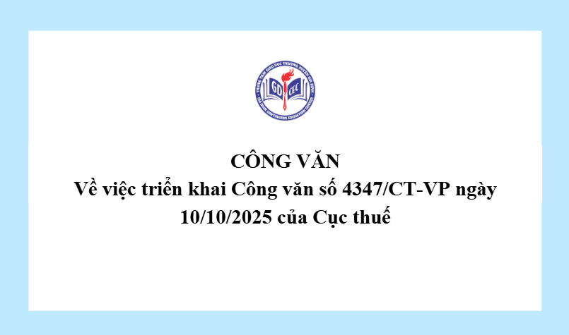 Công văn về việc triển khai Công văn số 4347/CT-VP ngày 10/10/2025 của Cục thuế 27 Tháng mười một, 20253 Views 4938_CV TRIEN KHAI.signedTải xuống 60121C_CV_ve_phoi_hop_chi_dao_ve_thue_signedTải xuống 60121CTải xuống