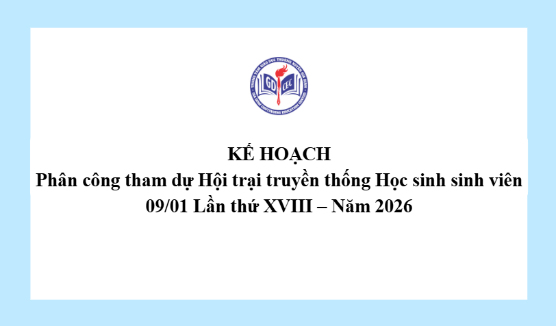 Kế hoạch phân công tham dự Hội trại truyền thống Học sinh sinh viên 09/01 Lần thứ XVIII – Năm 2026 16 Tháng 12, 20254 Views Về Kế hoạch tham gia Hội trại truyền thống (1)Tải xuống