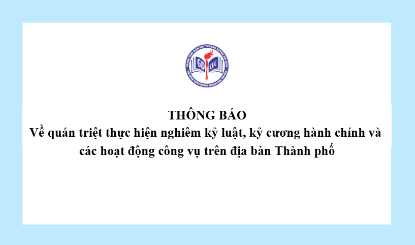 Thông báo về quán triệt thực hiện nghiêm kỷ luật, kỷ cương hành chính và các hoạt động công vụ trên địa bàn Thành phố 16 Tháng 12, 20254 Views Về Thông báo triển khai thực hiện nghiêm kỷ cương, kỷ luật hành chính (1)Tải xuống