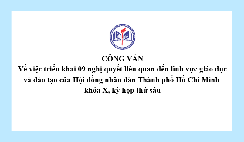 Công văn về việc triển khai 09 nghị quyết liên quan đến lĩnh vực giáo dục và đào tạo của Hội đồng nhân dân Thành phố Hồ Chí Minh khóa X, kỳ họp thứ sáu