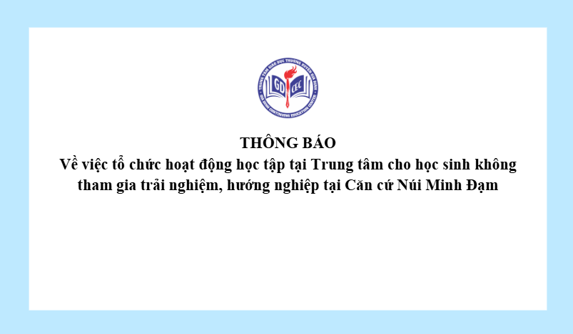 Thông báo Về việc tổ chức hoạt động học tập tại Trung tâm cho học sinh không tham gia trải nghiệm, hướng nghiệp tại Căn cứ Núi Minh Đạm 15 Tháng 1, 20261 Views 20_GD-TB Về việc tổ chức hoạt động học tập tại Trung tâm cho học sinh không tham gia trải nghiệm tại Núi Minh Đạm (1)Tải xuống