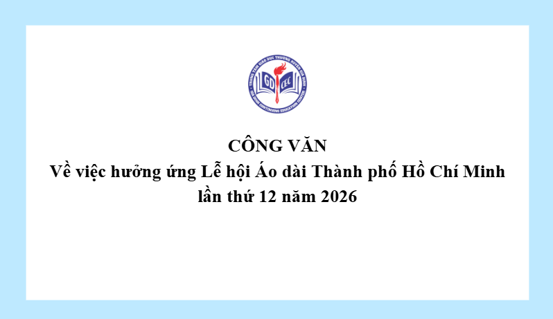 Công văn Về việc hưởng ứng Lễ hội Áo dài Thành phố Hồ Chí Minh lần thứ 12 năm 2026 13 Tháng 2, 20262 Views 1401_2026.01.27 – SGD- Trien khai – Lễ hội áo dài Thành phố (V1)Tải xuống 341 SGDDT_0001.signedTải xuống Ke_hoach_Le_hoi_Ao_dai_2026_signedTải xuống