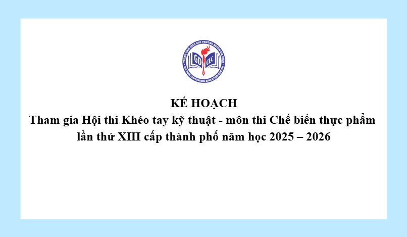 Kế hoạch Tham gia Hội thi Khéo tay kỹ thuật – môn thi Chế biến thực phẩm lần thứ XIII cấp thành phố năm học 2025 – 2026 25 Tháng 2, 20269 Views 78_GD-KH tham gia Hoi thi Kheo tay ky thuat-Che bien thuc phamTải xuống