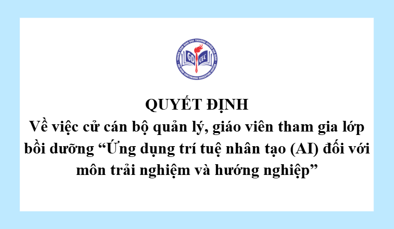 Quyết định Về việc cử cán bộ quản lý, giáo viên tham gia lớp bồi dưỡng “Ứng dụng trí tuệ nhân tạo (AI) đối với môn trải nghiệm và hướng nghiệp” 2 Tháng 3, 20261 Views 80_Quyết định về việc cử tham gia lớp bồi dưỡng ứng dụng trí tuệ nhân tạo môn HĐTNHNTải xuống 80_DS cử tham gia lớp bồi dưỡng ứng dụng trí tuệ nhân tạo AI môn HĐTNHNTải xuống