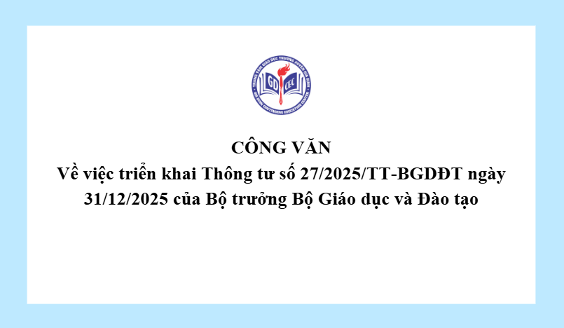 Công văn về việc triển khai Thông tư số 27/2025/TT-BGDĐT ngày 31/12/2025 của Bộ trưởng Bộ Giáo dục và Đào tạo 3 Tháng 3, 202672 Views 1689_CV TK TT 27 2025Tải xuống