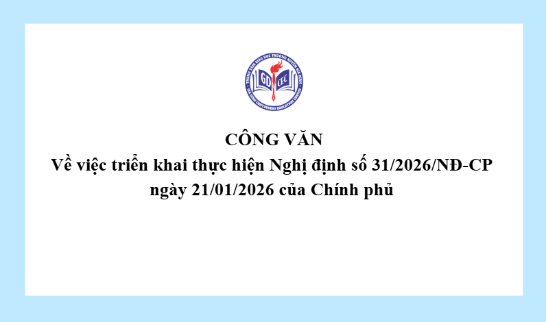 Công văn về việc triển khai thực hiện Nghị định số 31/2026/NĐ-CP ngày 21/01/2026 của Chính phủ 14 Tháng 3, 20263 Views 1890_trien khai thuc hiên nghi dinh 31Tải xuống 1890_06-02-CV trien khai NĐ 31 cua CP.signed.signedTải xuống 1890_31_2026_ND-CP_21012026-signedTải xuống