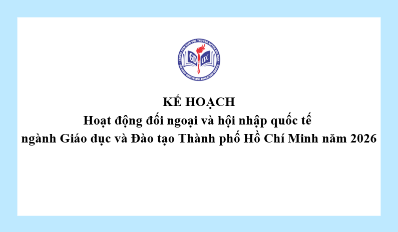 Kế hoạch Hoạt động đối ngoại và hội nhập quốc tế ngành Giáo dục và Đào tạo Thành phố Hồ Chí Minh năm 2026 14 Tháng 3, 20264 Views 1876_KH hoat dong doi ngoai va hoi nhap quoc te_2026Tải xuống 1876-17032025_KH_De_an_Hoi_nhap_quoc_te_2Tải xuống 1876-1600_QD-TTg_19122024-signedTải xuống