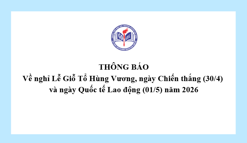 Thông báo Về nghỉ Lễ Giỗ Tổ Hùng Vương, ngày Chiến thắng (30/4) và ngày Quốc tế Lao động (01/5) năm 2026 20 Tháng 4, 20262 Views 151_GD-TB nghi Gio To Hung vuong va Le chien thang 30.4Tải xuống
