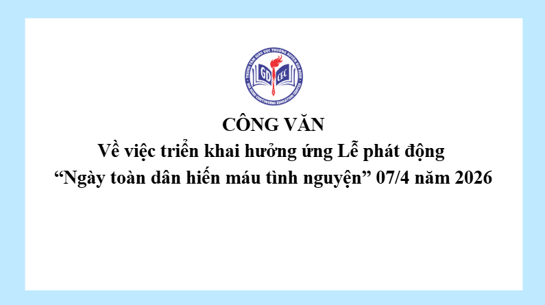 Công văn về việc triển khai hưởng ứng Lễ phát động “Ngày toàn dân hiến máu tình nguyện” 07/4 năm 2026 6 Tháng 4, 202633 Views Xem thêm