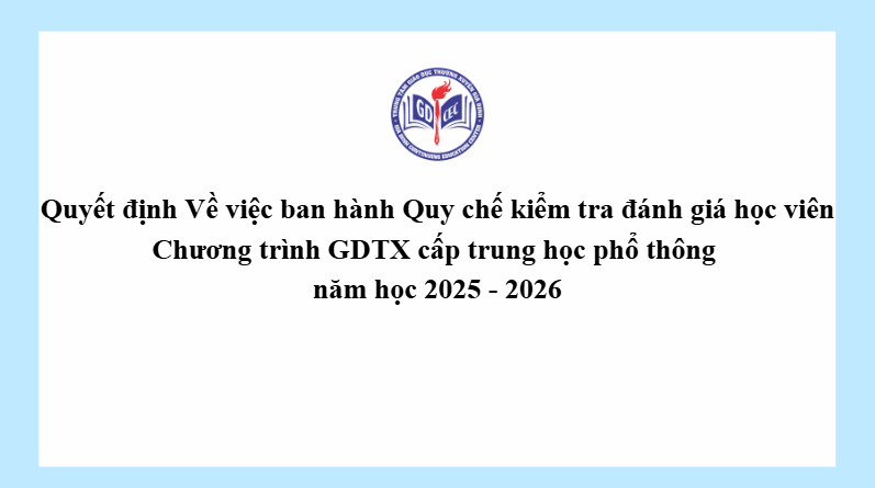 Quyết định Về việc ban hành Quy chế kiểm tra đánh giá học viên Chương trình GDTX cấp trung học phổ thông năm học 2025 – 2026 24 Tháng 10, 202526 Views Xem thêm