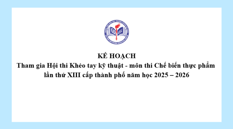 Kế hoạch Tham gia Hội thi Khéo tay kỹ thuật – môn thi Chế biến thực phẩm lần thứ XIII cấp thành phố năm học 2025 – 2026 25 Tháng 2, 20269 Views Xem thêm