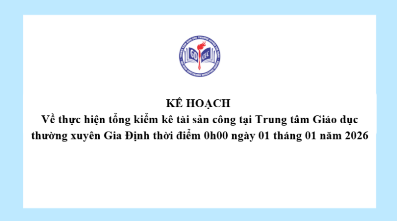 Kế hoạch Về thực hiện tổng kiểm kê tài sản công tại Trung tâm Giáo dục thường xuyên Gia Định thời điểm 0h00 ngày 01 tháng 01 năm 2026 12 Tháng 12, 202540 Views Xem thêm