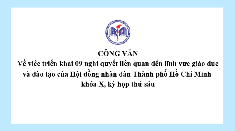 Công văn về việc triển khai 09 nghị quyết liên quan đến lĩnh vực giáo dục và đào tạo của Hội đồng nhân dân Thành phố Hồ Chí Minh khóa X, kỳ họp thứ sáu 7 Tháng 1, 202612 Views Xem thêm