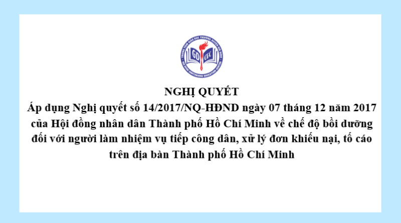 Nghị quyết Áp dụng Nghị quyết số 14/2017/NQ-HĐND ngày 07 tháng 12 năm 2017 của Hội đồng nhân dân Thành phố Hồ Chí Minh về chế độ bồi dưỡng đối với người làm nhiệm vụ tiếp công dân, xử lý đơn khiếu nại, tố cáo trên địa bàn Thành phố Hồ Chí Minh 7 Tháng 1, 202612 Views Xem thêm