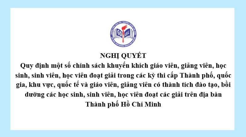 Nghị quyết Quy định một số chính sách khuyến khích giáo viên, giảng viên, học sinh, sinh viên, học viên đoạt giải trong các kỳ thi cấp Thành phố, quốc gia, khu vực, quốc tế và giáo viên, giảng viên có thành tích đào tạo, bồi dưỡng các học sinh, sinh viên, học viên đoạt các giải trên địa bàn Thành phố Hồ Chí Minh 7 Tháng 1, 202617 Views Xem thêm