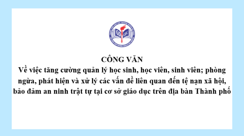 Công văn về việc tăng cường quản lý học sinh, học viên, sinh viên; phòng ngừa, phát hiện và xử lý các vấn đề liên quan đến tệ nạn xã hội, bảo đảm an ninh trật tự tại cơ sở giáo dục trên địa bàn Thành phố 31 Tháng 3, 20262 Views Xem thêm