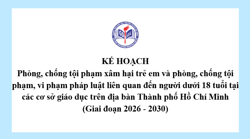 Kế hoạch Phòng, chống tội phạm xâm hại trẻ em và phòng, chống tội phạm, vi phạm pháp luật liên quan đến người dưới 18 tuổi tại các cơ sở giáo dục trên địa bàn Thành phố Hồ Chí Minh (Giai đoạn 2026 – 2030) 31 Tháng 3, 20264 Views Xem thêm