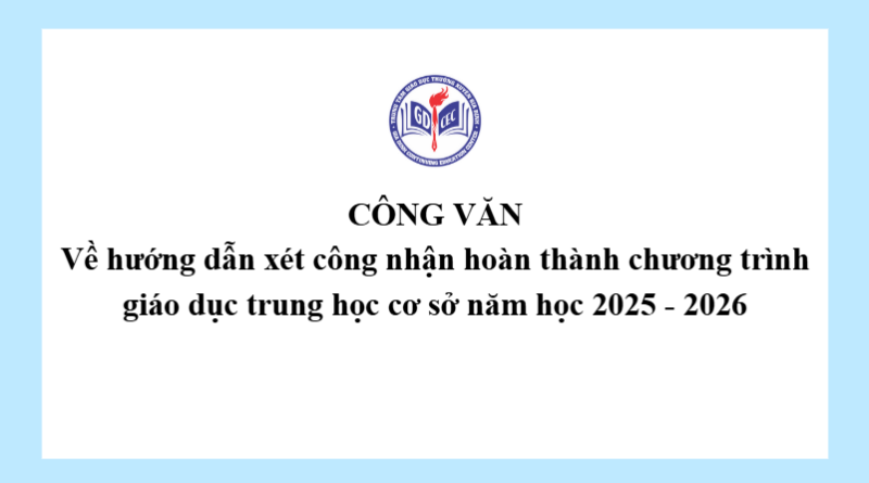 Công văn Về hướng dẫn xét công nhận hoàn thành chương trình giáo dục trung học cơ sở năm học 2025 – 2026 31 Tháng 3, 20264 Views Xem thêm