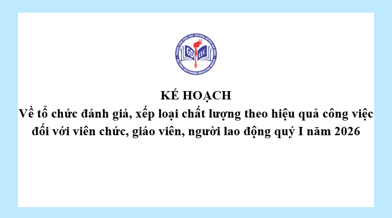 Kế hoạch Về tổ chức đánh giá, xếp loại chất lượng theo hiệu quả công việc đối với viên chức, giáo viên, người lao động quý I năm 2026 16 Tháng 3, 20266 Views Xem thêm
