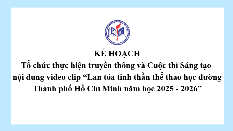 Kế hoạch Tổ chức thực hiện truyền thông và Cuộc thi Sáng tạo nội dung video clip “Lan tỏa tinh thần thể thao học đường Thành phố Hồ Chí Minh năm học 2025 – 2026” 6 Tháng 4, 202617 Views Xem thêm