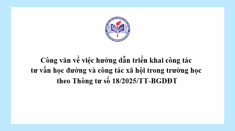 Công văn về việc hướng dẫn triển khai công tác tư vấn học đường và công tác xã hội trong trường học theo Thông tư số 18/2025/TT-BGDĐT 24 Tháng 10, 202563 Views Xem thêm