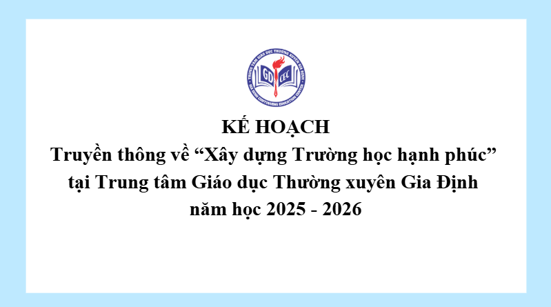 Kế hoạch Truyền thông về “Xây dựng Trường học hạnh phúc” tại Trung tâm Giáo dục Thường xuyên Gia Định năm học 2025 – 2026 31 Tháng 12, 202515 Views Xem thêm