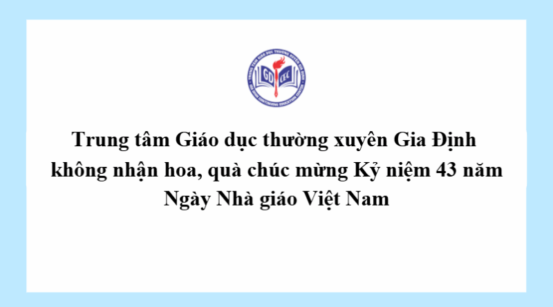 Trung tâm Giáo dục thường xuyên Gia Định không nhận hoa, quà chúc mừng Kỷ niệm 43 năm Ngày Nhà giáo Việt Nam (Đính kèm Công văn số 4417/SGDĐT-VP)